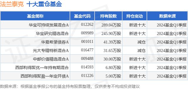 根據(jù)2024基金Q1季報公募基金重倉股數(shù)據(jù),重倉該股的公募基金共7家,金年會其中持有數(shù)量最多的公募基金為華寶可持續(xù)發(fā)展混合A。華寶可持續(xù)發(fā)展混合A目前規(guī)模為5.1億元,最新凈值0.7313(6月5日),較上一交易日下跌0.95%,近一年下跌15.53%。該公募基金現(xiàn)任基金經理為賀喆。賀喆在任的基金產品包括:華寶制造股票,管理時間為2018年8月24日至今,期間收益率為71.61%;華寶研究精選混合,管理時間為2021年12月21日至今,期間收益率為-32.76%;華寶遠景混合A,管理時間為2024年3月25日至今,期間收益率為nan%。